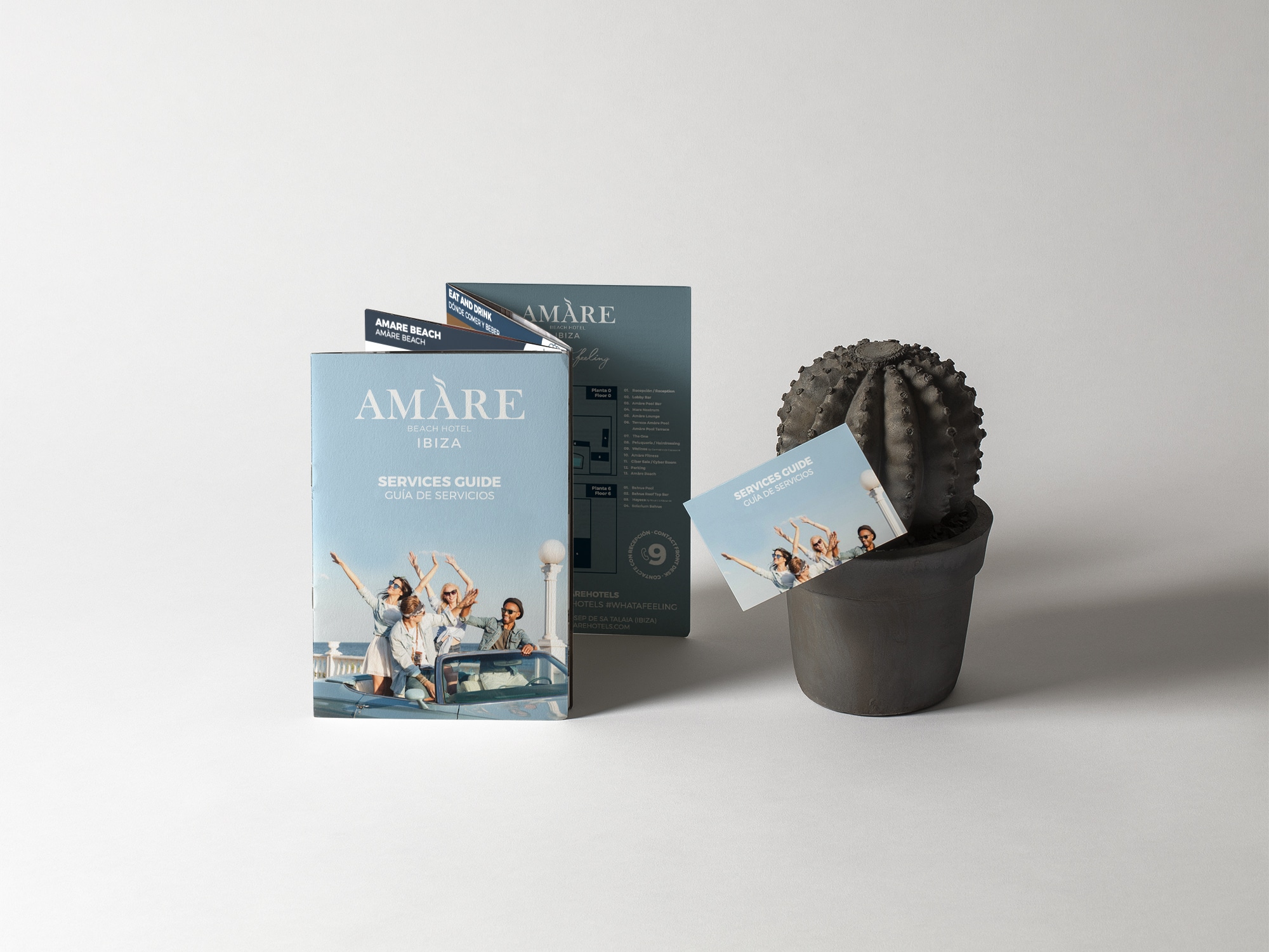 Diseño de materiales gráficos, amenities, merchandising y recursos gráficos para Amare Hotels así como el diseño de campañas publicitarias para la marca.