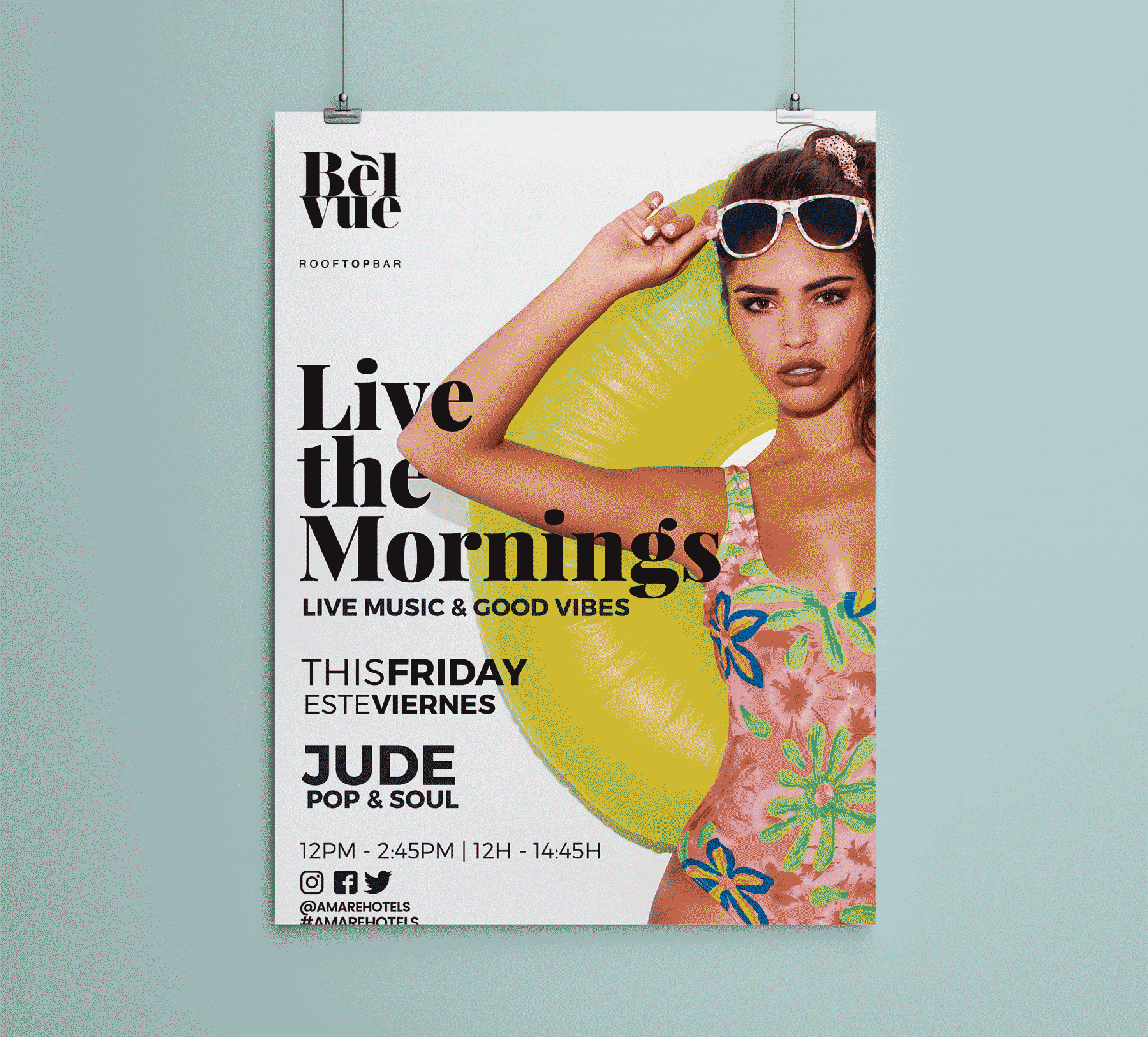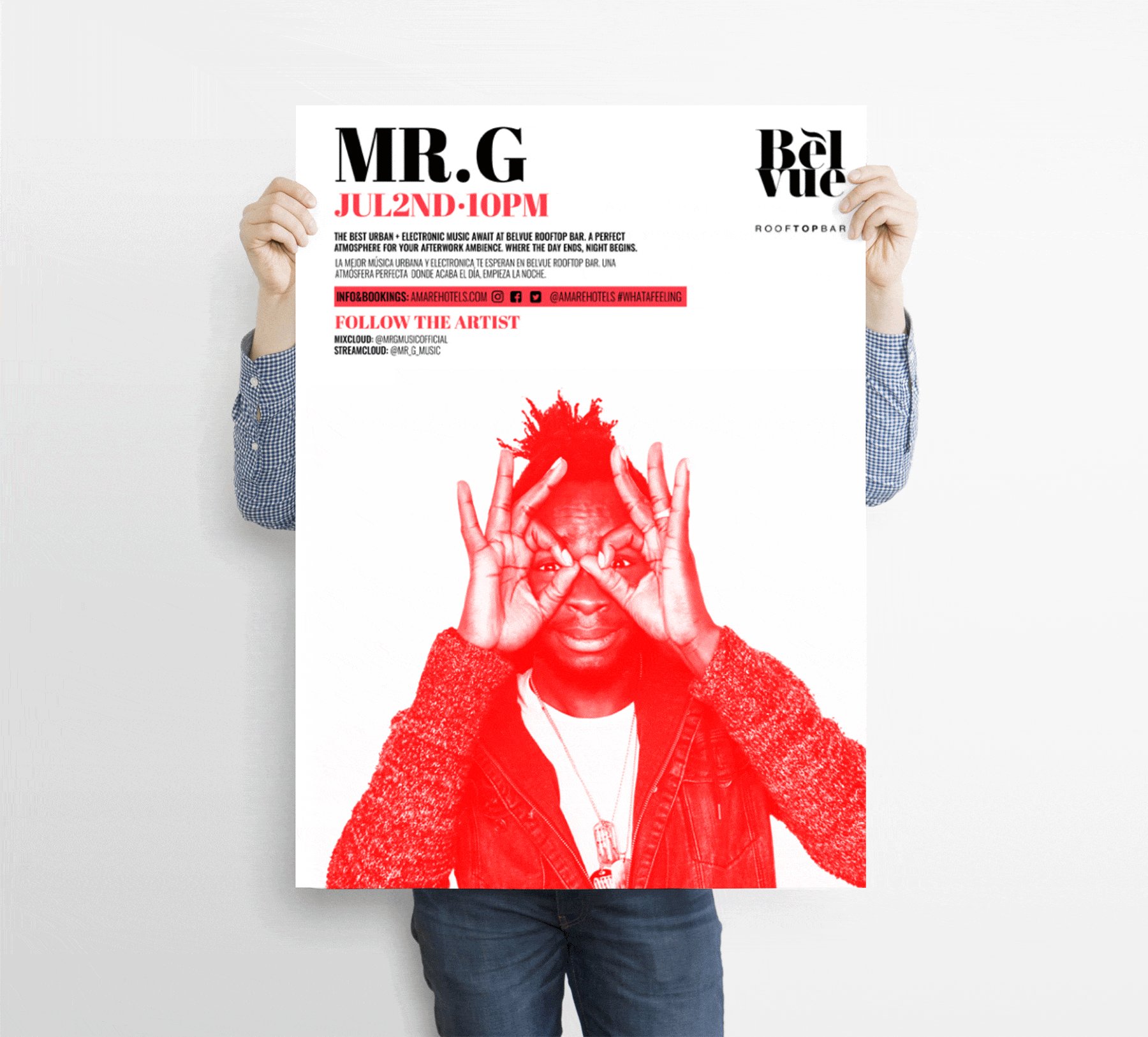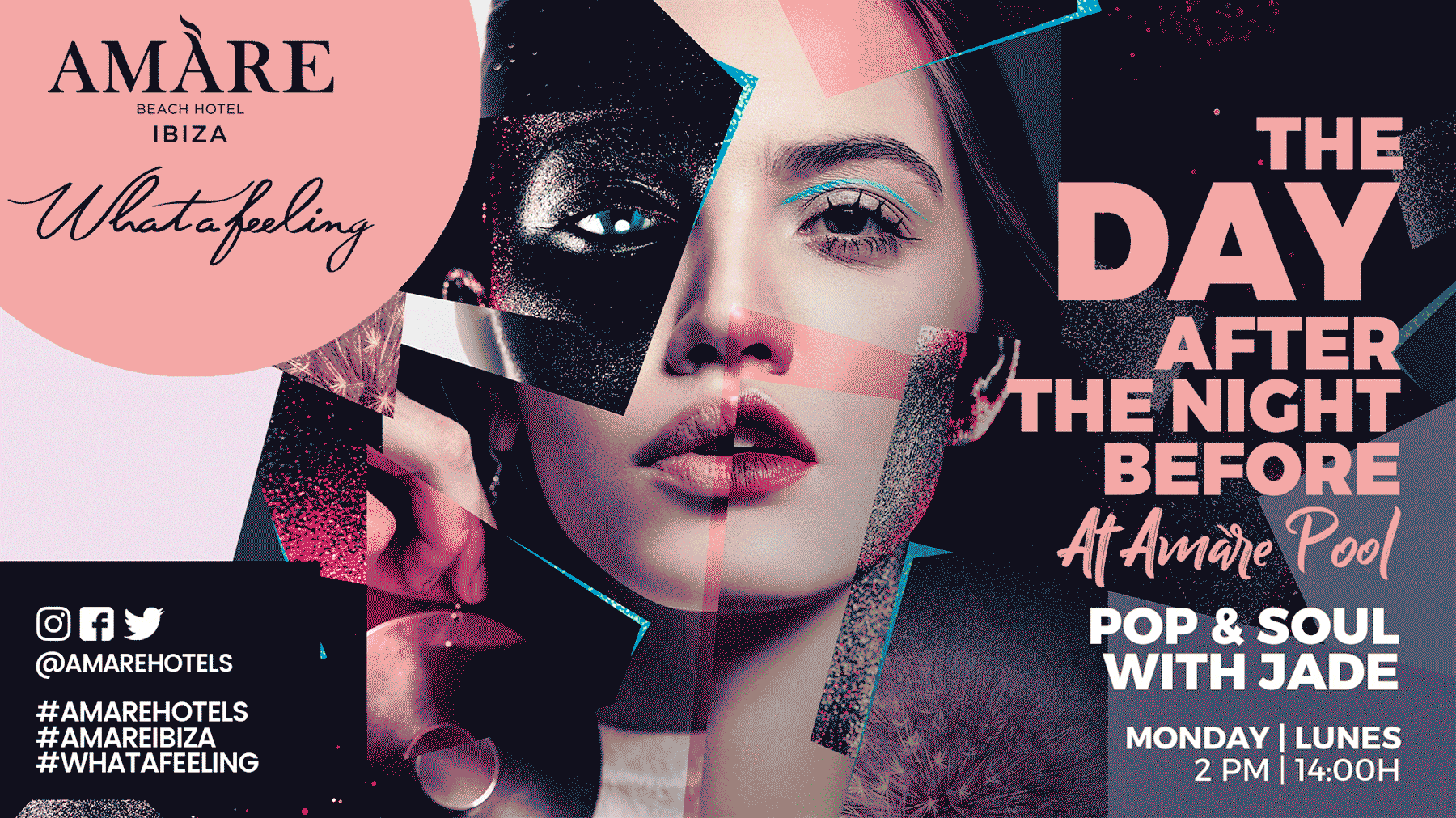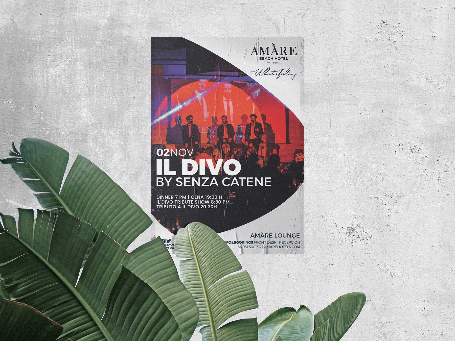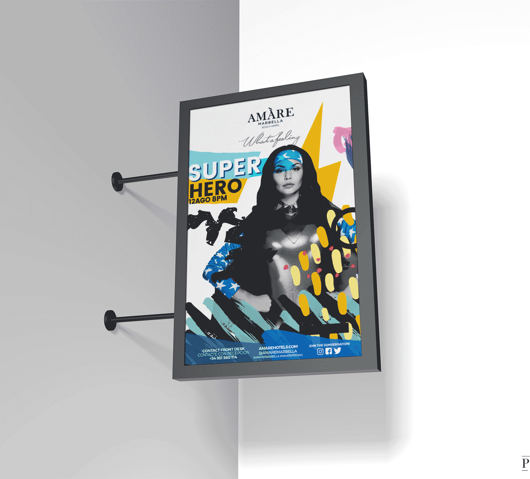 De este modo, se generan distintas líneas gráficas diferentes entre sí para anunciar fiestas temáticas, eventos en directo, actuaciones singulares o exposiciones, entre otras, agrupando y diferenciando así la amplia programación de actividades de tanto de Amare Marbella como de Amàre Ibiza en líneas gráficas propias para la marca Amare Hotels.