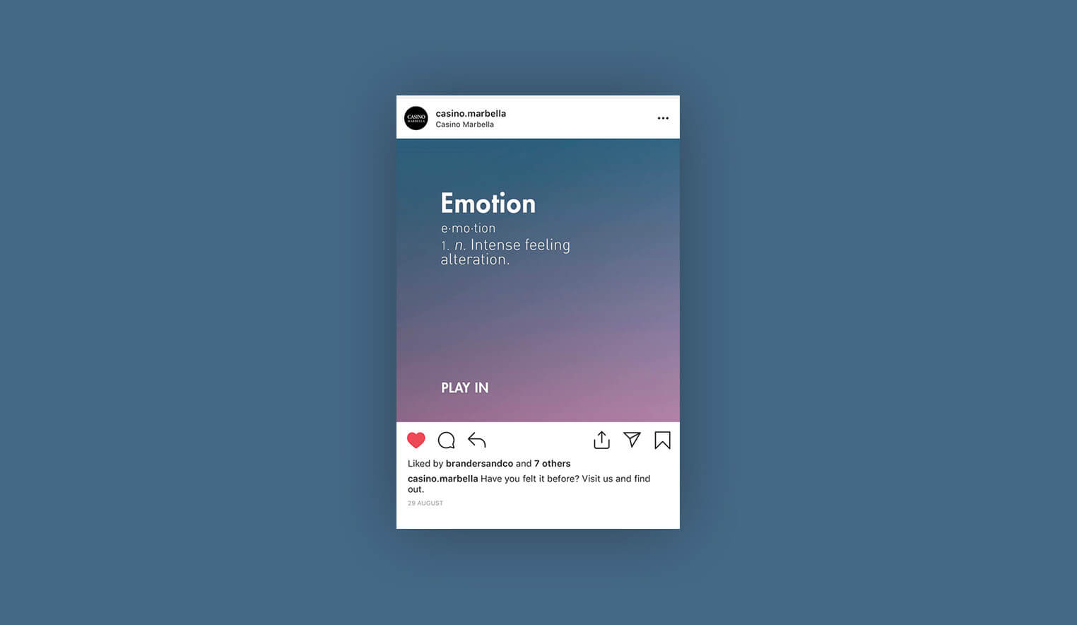 Teniendo en cuenta las limitaciones legales dela comunicación y publicidad del sector del juego, se busca dar un concepto creativo que mantenga al Casino en la mente del consumidor, al mismo tiempo que se establece una campaña limpia, tranquila y sutil.