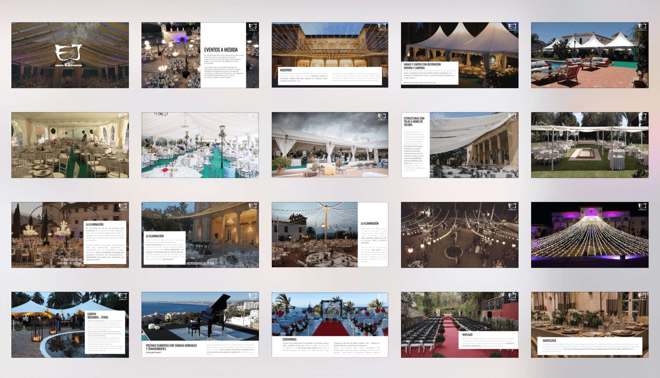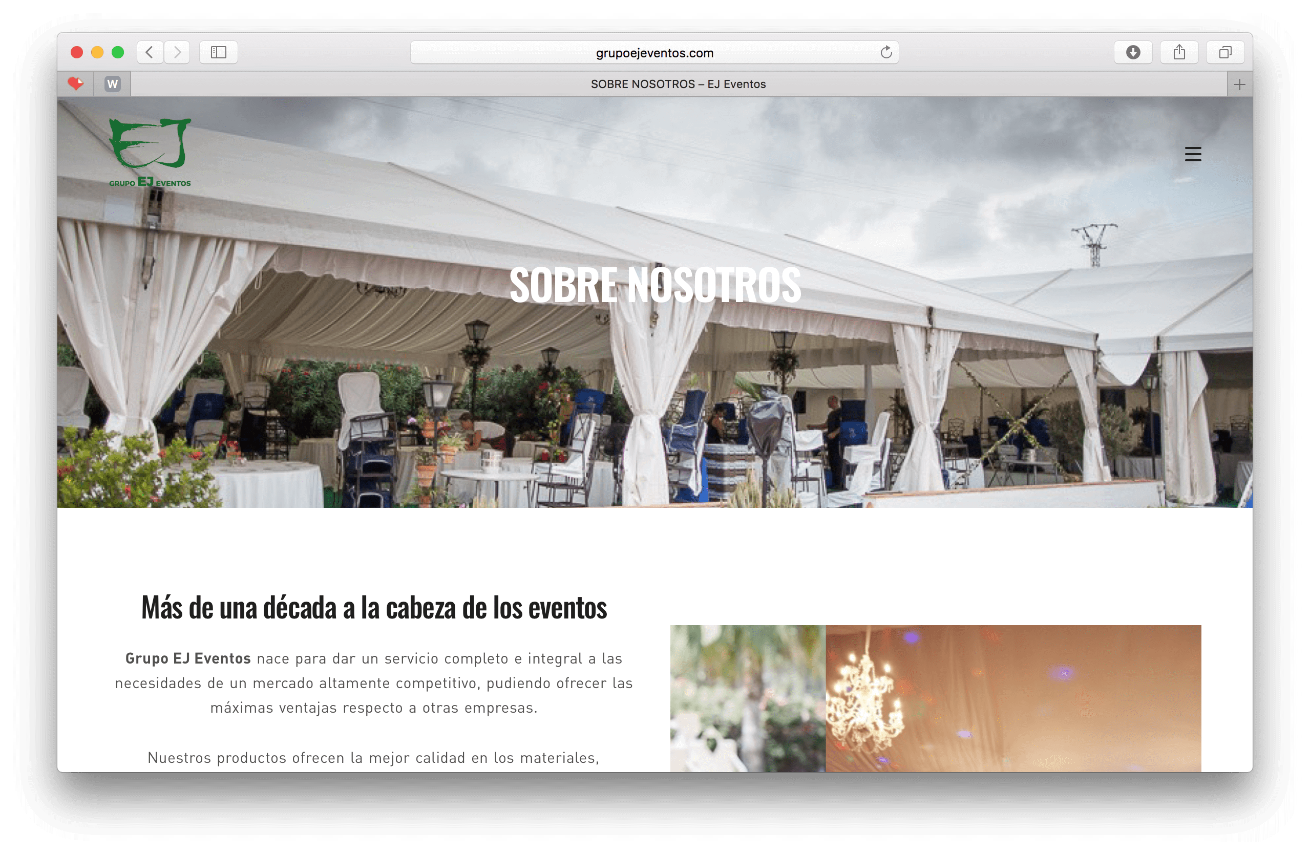 Grupo EJ Eventos es una empresa líder en organización y decoración de eventos para fiestas corporativas y privadas. Especialistas en instalación y montaje de carpas para celebraciones, iluminación y decoración de eventos y espacios.