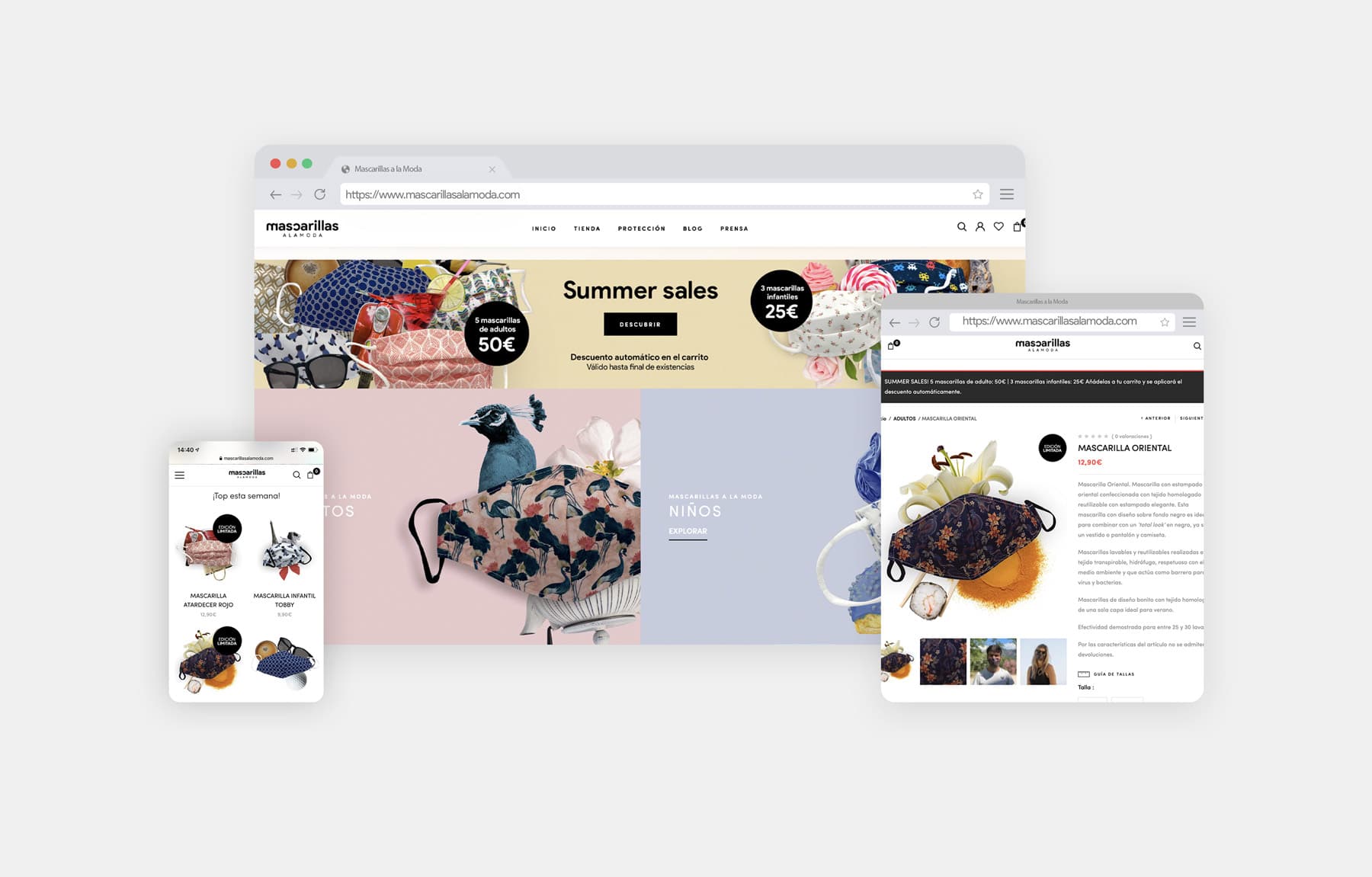 Para definir una línea gráfica coherente con la marca y acercarla al público al que se dirige Mascarillas a la Moda, se define un logotipo sencillo y versátil en el que destaca su capacidad de adaptarse a cualquier formato.