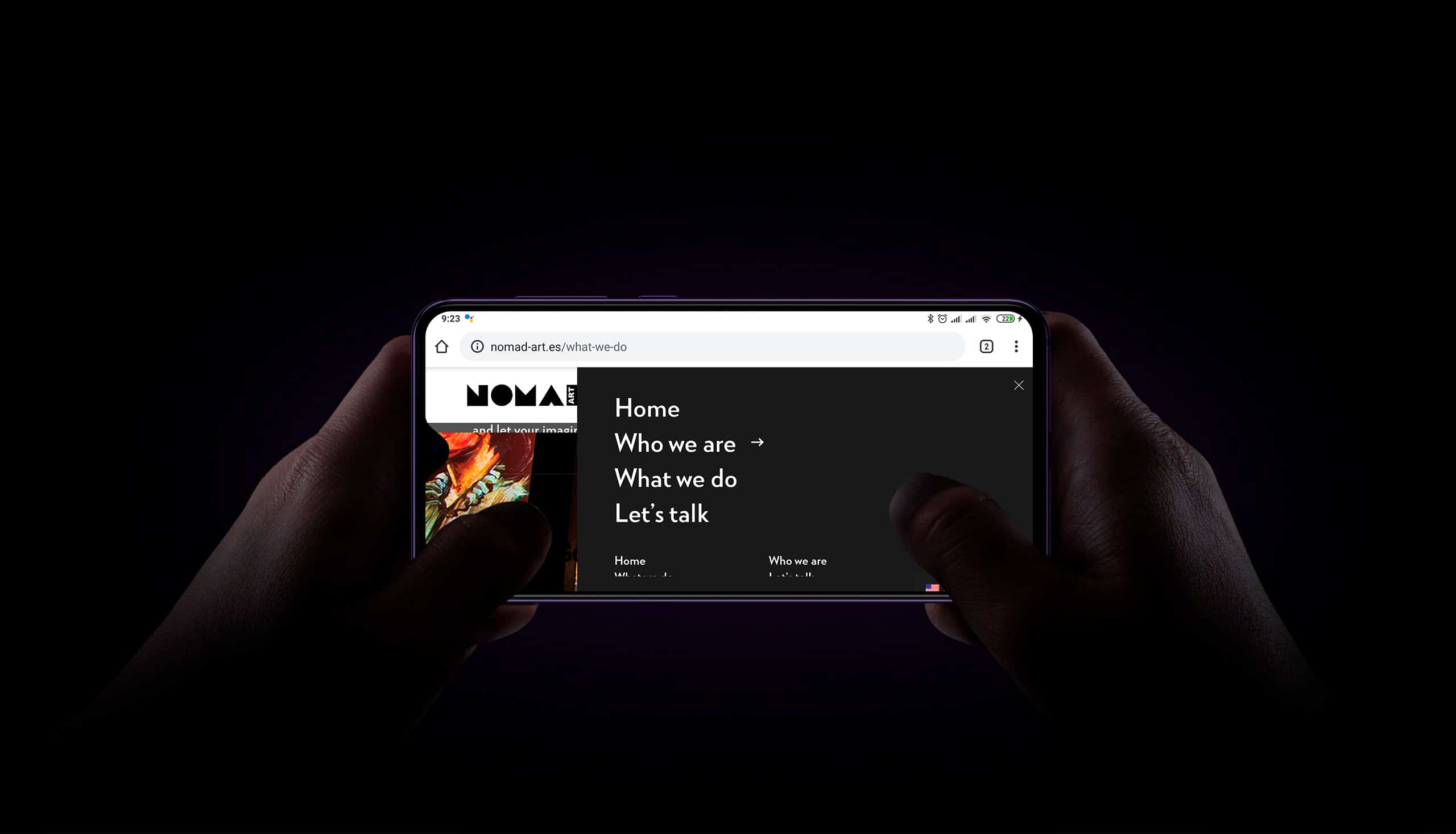 A la hora de trasladar el concepto de la identidad a la web de Nomad-Art se mantiene el valor de la estructura, de la simplicidad y de la facilidad de la experiencia del usuario, como pilar estructural del desarrollo.