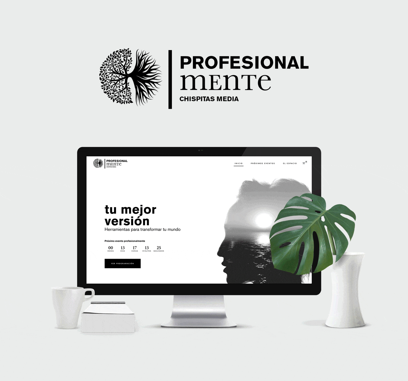 Puesto que la base del proyecto ProfesionalMente se basa en la conexión entre las aptitudes personales y profesionales, tratadas desde la óptica del crecimiento personal, la configuración de la identidad visual se centra en encontrar elementos simbólicos que unan las tres disciplinas.