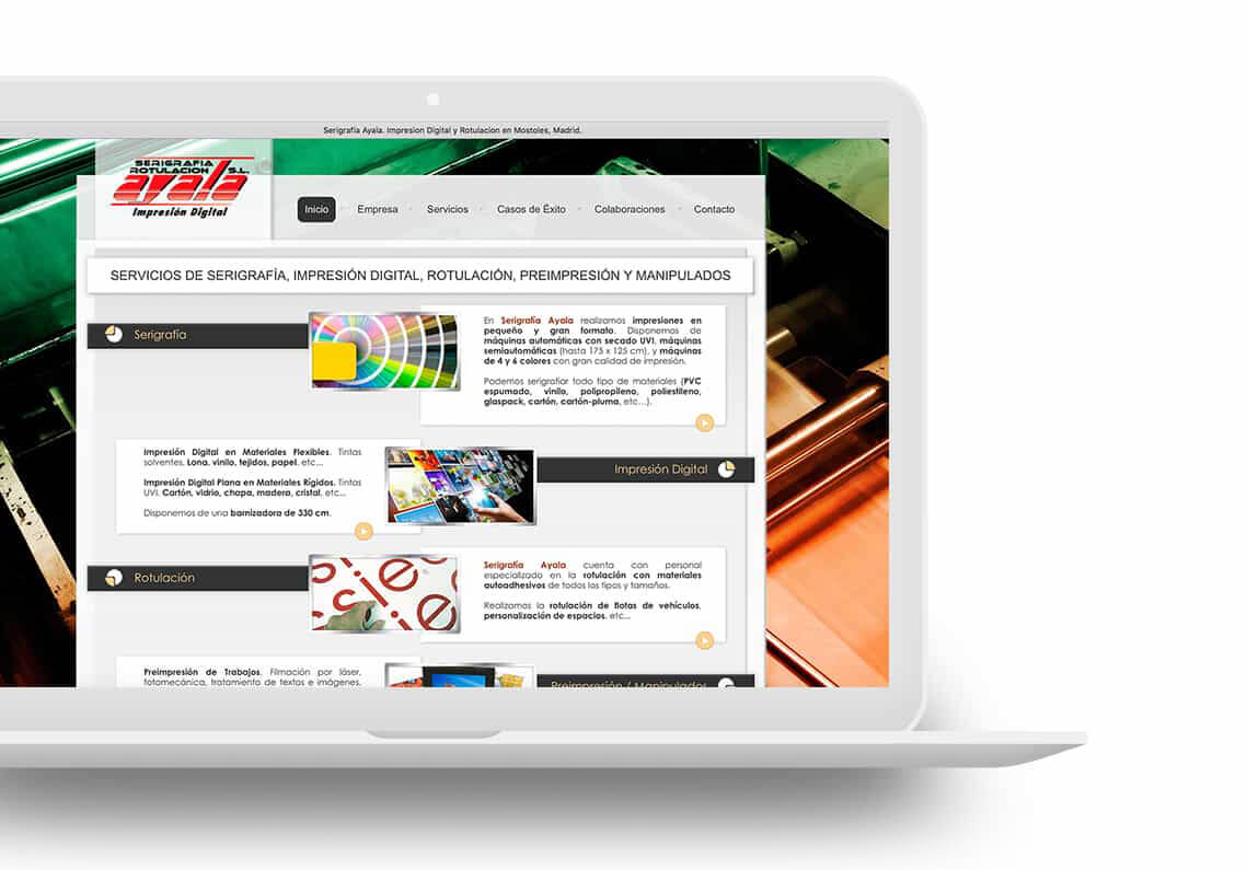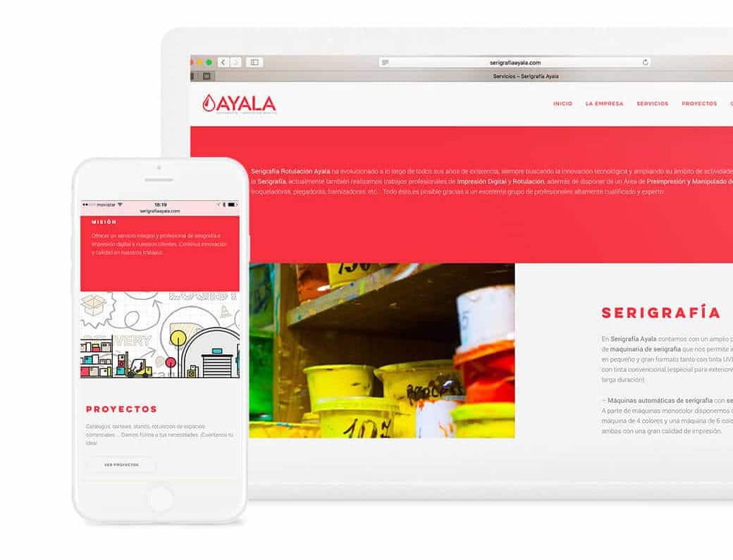 La web de Serigrafía Ayala se basaba en una estructura tecnológica hoy antigua y se propone un rediseño siguiendo las tendencias actuales en programación y diseño.