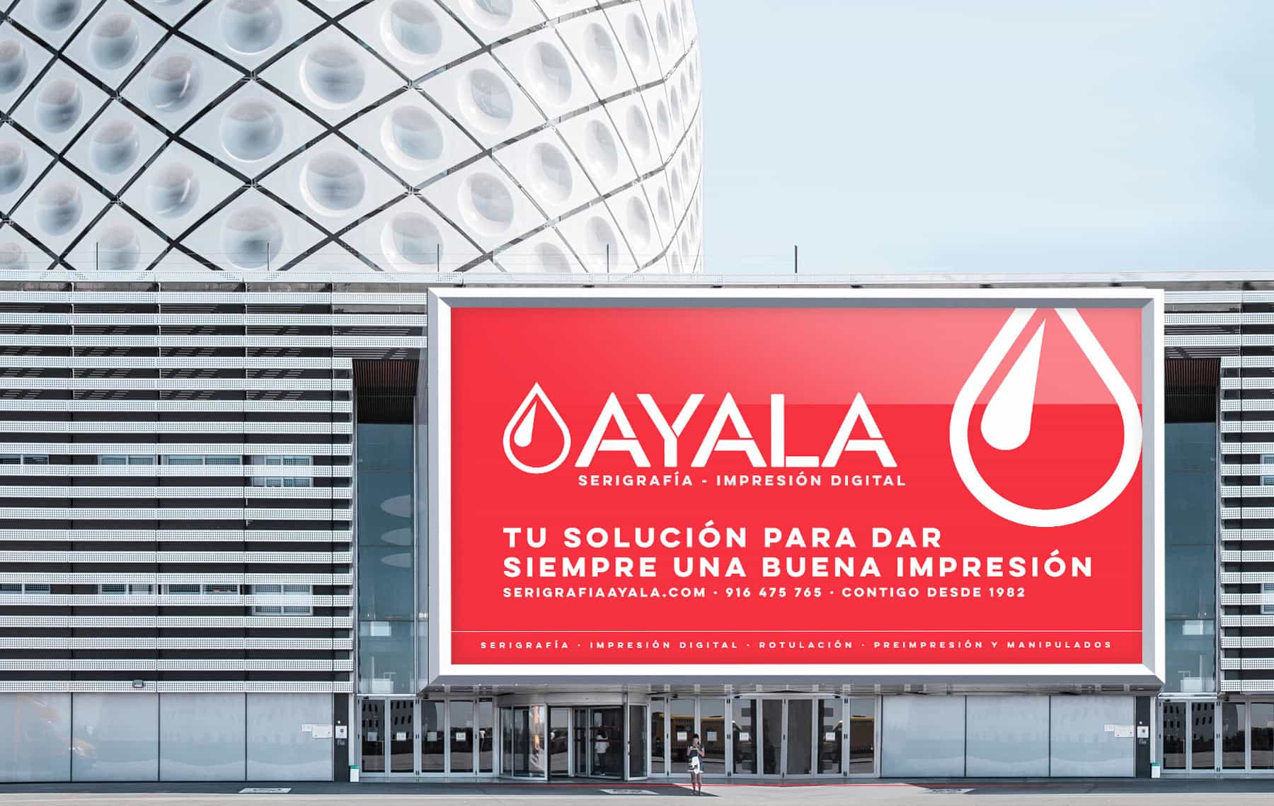Serigrafía Ayala, fundada en 1982, es una empresa dedicada a la Serigrafía, Impresión Digital, Rotulación y Preimpresión y manipulados del papel. Con sede en Móstoles (Madrid), Serigrafía Ayala trabaja con marcas líderes en su sector abogando siempre por la calidad y detalle de sus producciones.