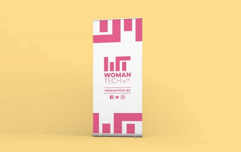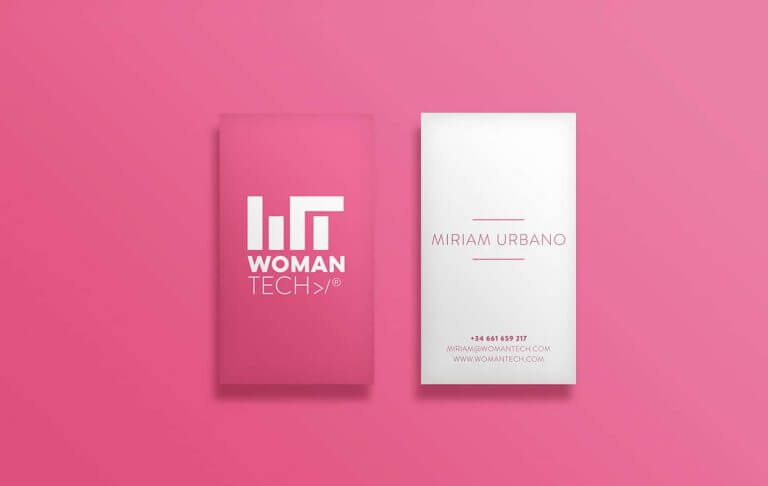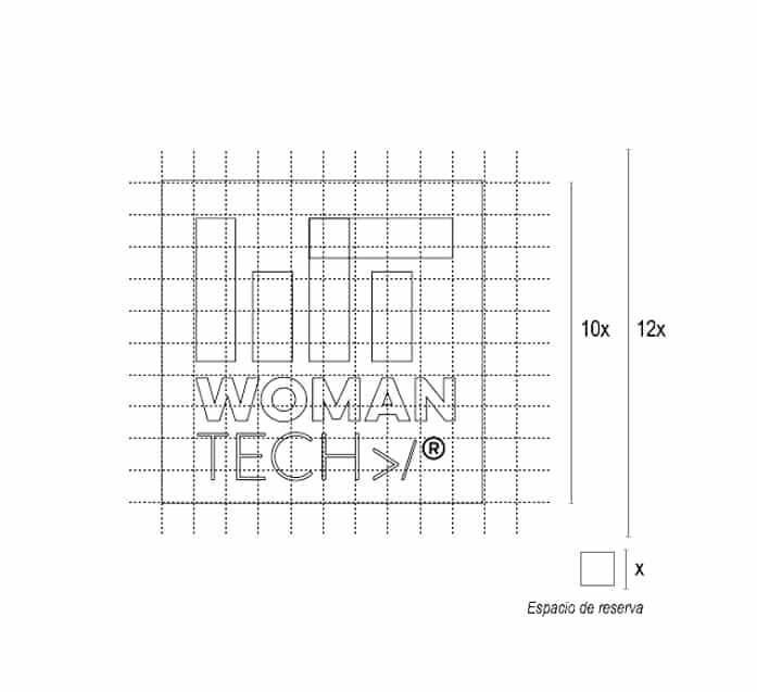 WOMAN y TECH se separan visualmente mediante el uso de distintas tipografías con el objetivo de que, aunque sea un único nombre, queden reflejadas las dos vertientes principales: La mujer y la tecnología.